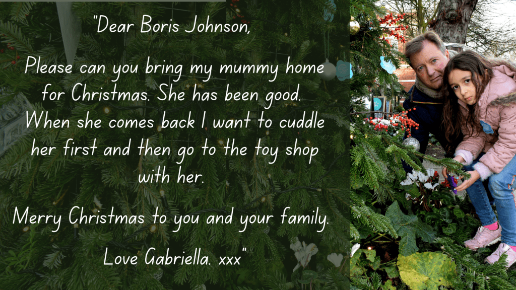 Last Christmas, Elika Ashoori and Gabriella Ratcliffe sat down to talk about the things they missed most about their respective parents and, then 6-year-old, Gabriella wrote a personal letter to Boris Johnson asking him to bring her mother home for Christmas. You can watch the full video and hear first-hand from Anoosheh’s and Nazanin’s loved ones HERE.